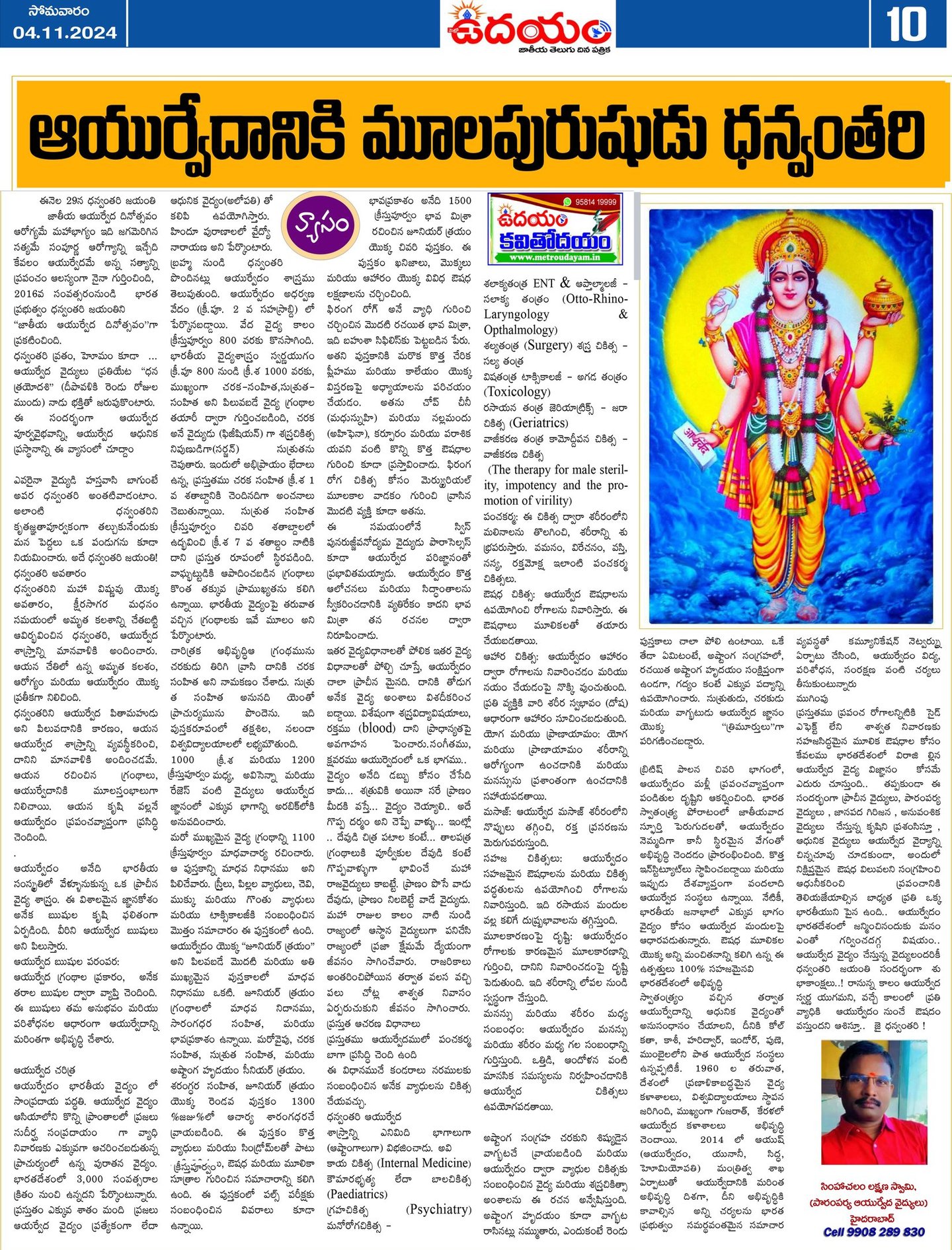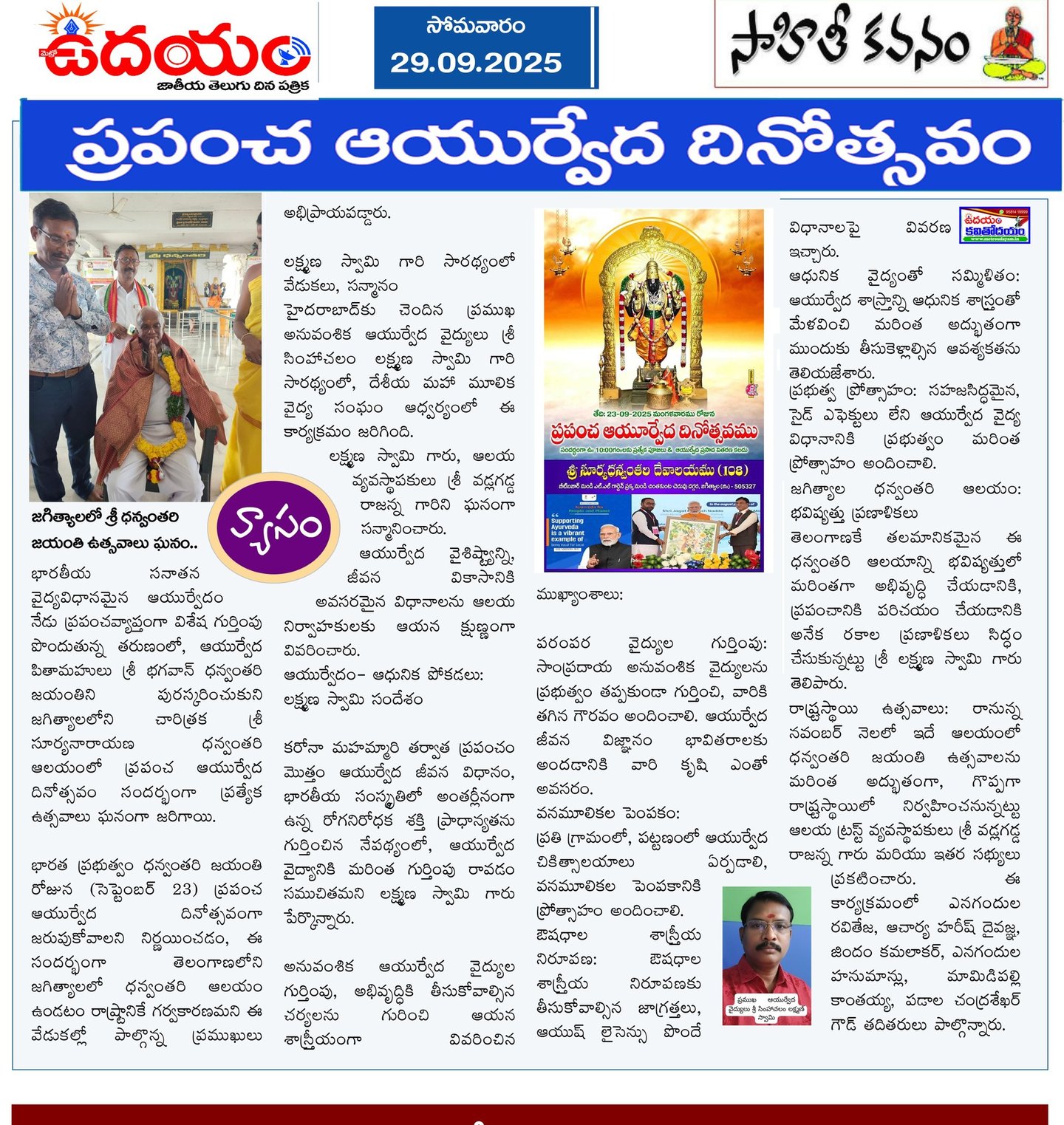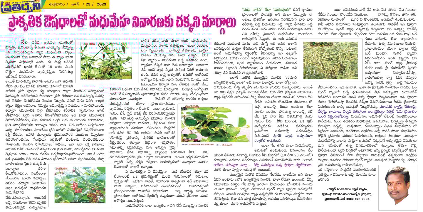 లక్ష్మణ్ స్వామి రచించిన ఆయుర్వేద వ్యాసాలు వివిధ పత్రికల్లో