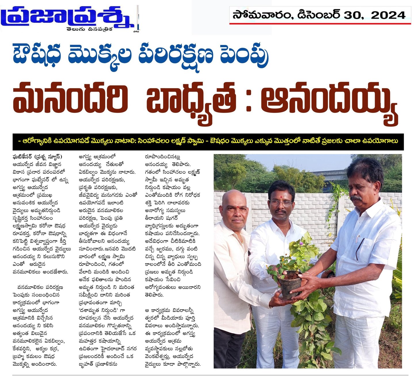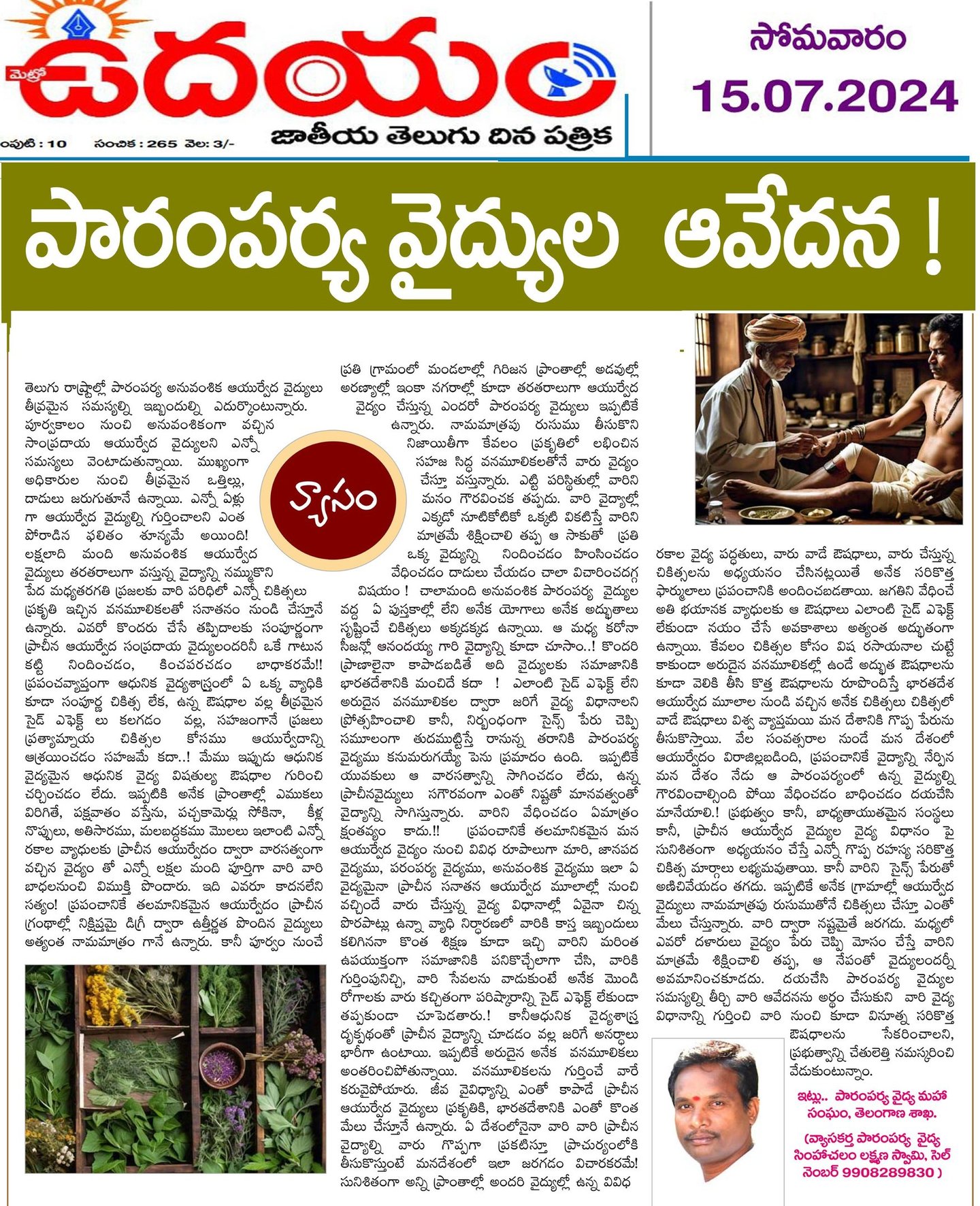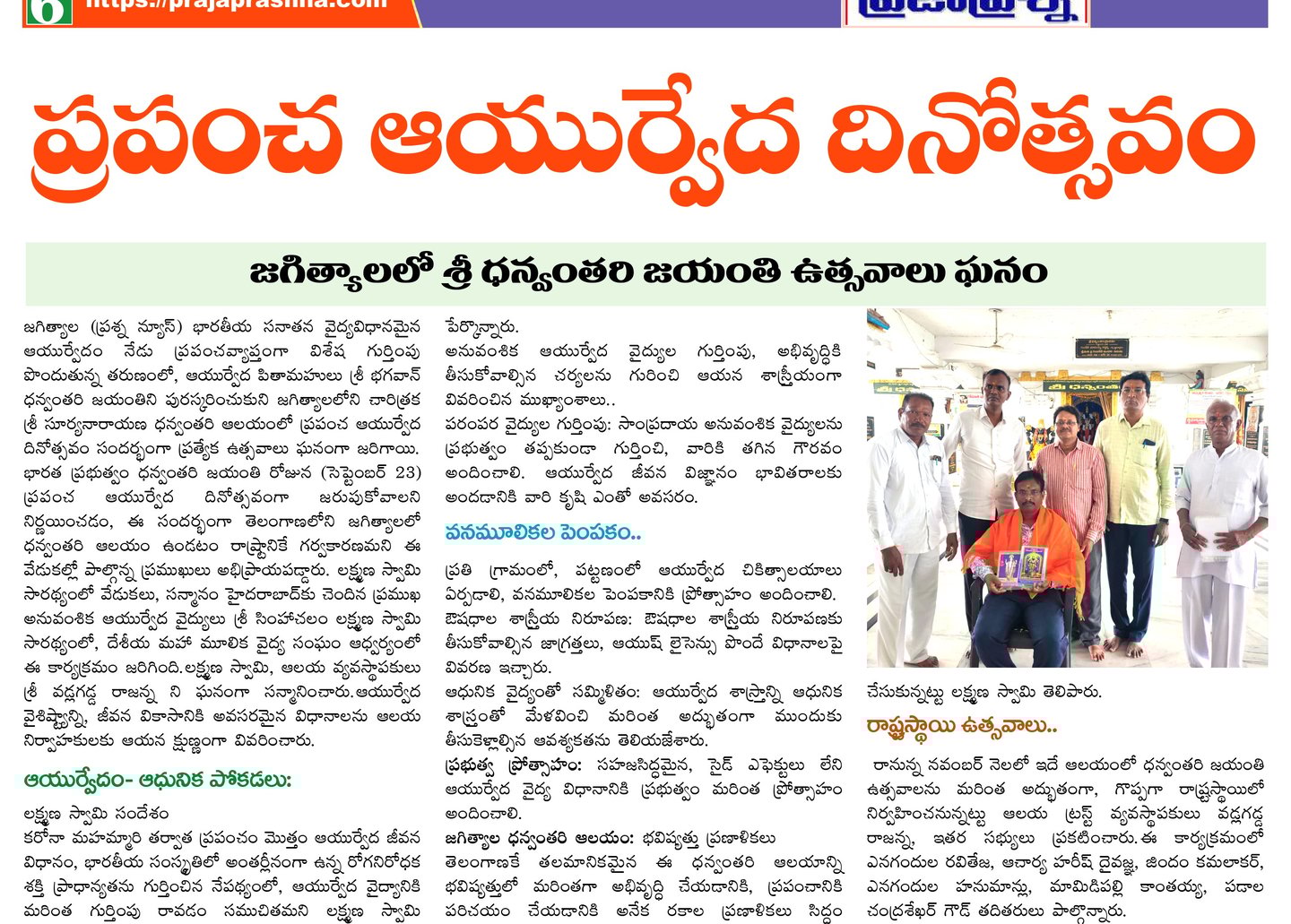 లక్ష్మణ్ స్వామి రచించిన ఆయుర్వేద వ్యాసాలు వివిధ పత్రికల్లో