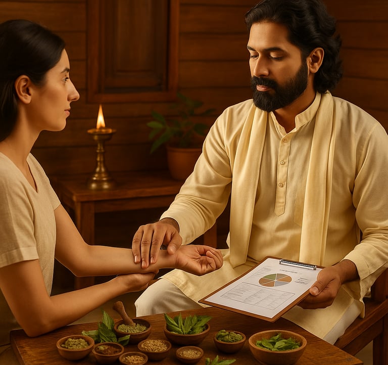 Eng: Our expert vaidya team offers personalized Ayurvedic consultations, helping you discover the root cause and holistic healing.